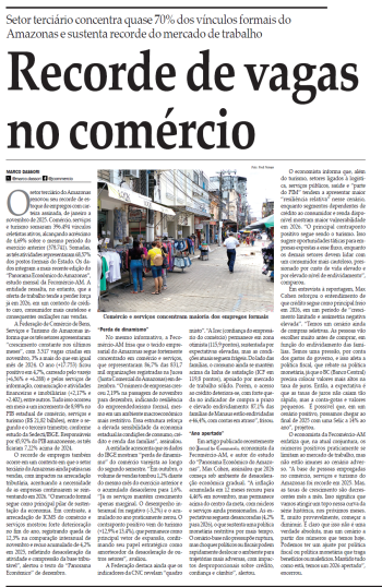A Fecomércio-AM avalia que o comércio, serviços e turismo do Estado escolheram menos do que o esperado em 2025. Estes setores tendem a recuperar a maior parte dessas perdas em 2026. Na mais recente edição do estudo “Panorama Econômico do...
