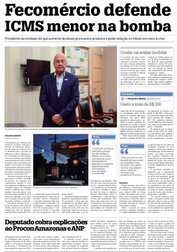 O presidente da Federação do Comércio de Bens, Serviços e Turismo do Estado do Amazonas (Fecomércio-AM), Aderson Frota, defendeu que o governo reduza o ICMS sobre os combustíveis como medida emergencial para conter os efeitos da alta do diesel e...